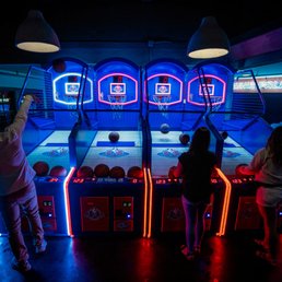 What an awesome place! We grabbed a couple of pizzas and the unlimited sodas (which were cheaper when prepaid online). We had a great time playing all the different games. Most machines were pretty well-maintained. The air conditioning is on full blast, so it was a perfect way to get out of the summer heat. We visited on a Wednesday, and it wasn't too crowded for most of our visit. We decided to leave once a large group of corporate networkers AND a large group of elementary-aged summer campers came in. My only two cents: Limit the number of large-group reservations so individuals can still enjoy themselves! :)